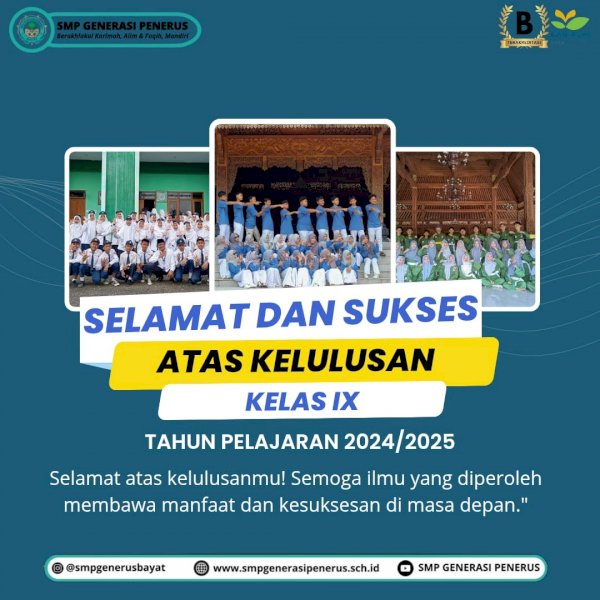 Generasi penerus bangsa, selamat atas kelulusanmu! Semangat menyongsong masa depan cerah tuk sukses dunia dan akhirat.